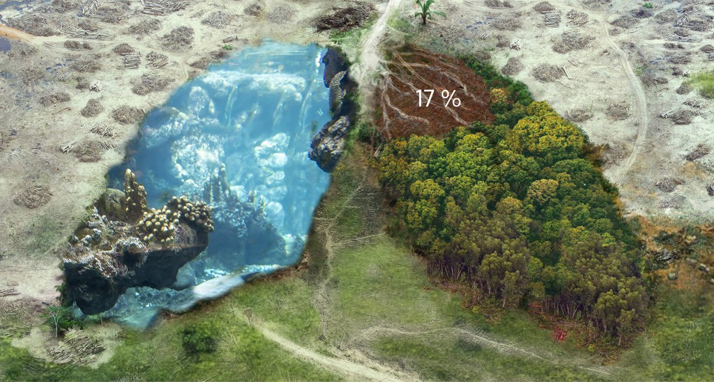 Today, we have about 3.7 billion hectares of remaining forests on Earth. We have already removed 17% of our green lung capacity. By 2030, our world population will have increased from 7.6 billion to 8.3 billion. We can only accommodate 700 million more people on our planet, by further deforestation of about 500 – 700 million more hectares.